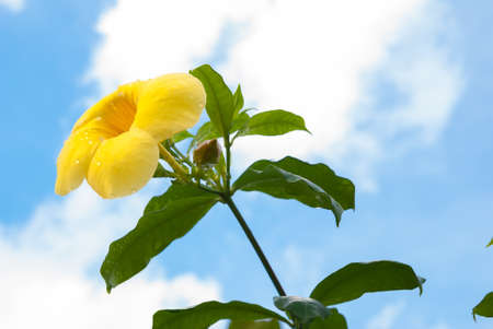 Yellow flower(Allamanda cathartica ) on blue sky background
