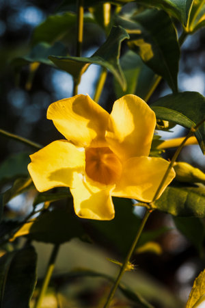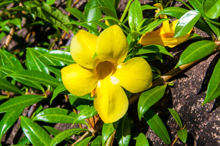 Yellow flower of Allamanda cathartica or Golden trumpetbush