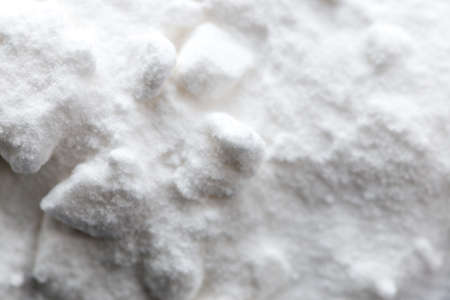 Potassium hydroxide flake on black background, chemistry in the laboratory