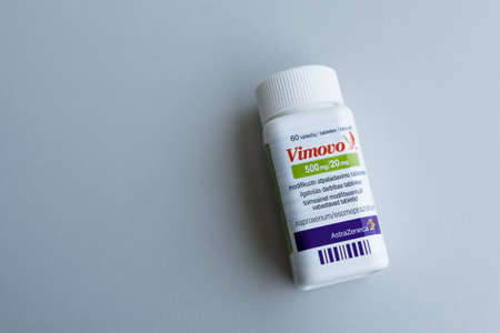 Animal rabies vaccine Biocan R from Bioveta is on gray. Six new ampoules with pink medicine inside. Rabies prophylaxis. Veterinary medicine. Inscriptions in Ukrainian. Kiev, Ukraine - April 24, 2021