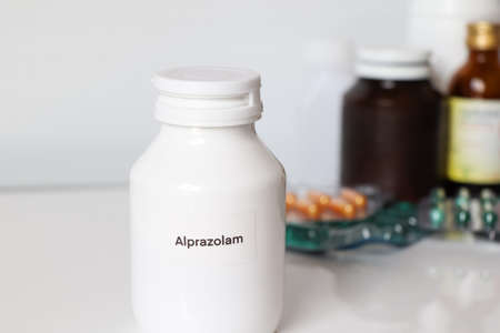 Alprazolam in bottle ,medicines are used to treat sick people.