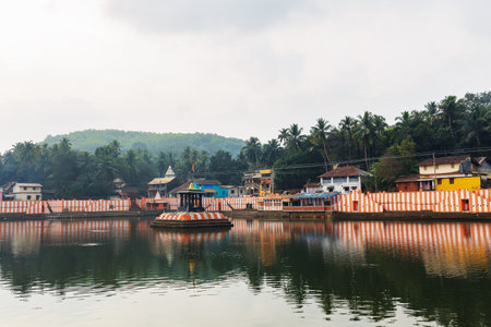 Gokarna, India - March 2019: Beautiful Indian houses on the sacred lake Koti Teertha in the center of Gokarna
