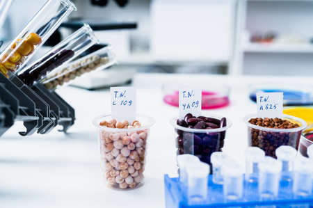 Chemical Laboratory of the Food supply . Food in laboratory, dna modify .GMO Genetically modified food in lab .