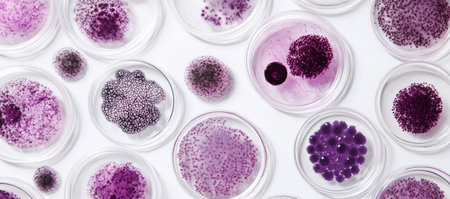 Various types of bacteria in a petri dish under a microscope, scientific medical laboratory research