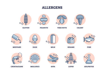 Composition with common food allergens including egg, milk, soya, nuts, fish, seafood, wheat flour, mustard, dried apricots and celery