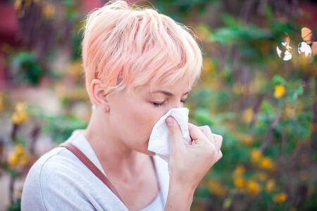 allergy. a woman who suffers from allergies