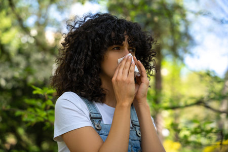 Curly-haired young woman suffering from seasonal allergy