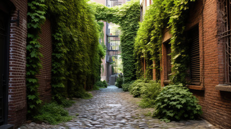 A quiet, narrow alleyway in an old town, with cobblestones and ivy-covered walls, suggesting history and solitude.