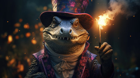 a crocodile dressed in a steampunk-inspired outfit, complete with a tie and fancy dress shirt, is captured in this photorealistic portrait. the image showcases the intricate details of the crocodile's attire, while the 8k resolution and sigma 85mm f1.4 dg hsm art lens used for the shot ensure stunning clarity. this unique depiction combines elements of aristocracy and the exotic nature of a cobra. ai