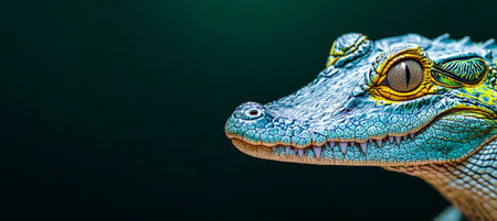 The Enigmatic Gaze of A Reptile, A Studio Portrait of a Baby Crocodile on a Dark Background.
