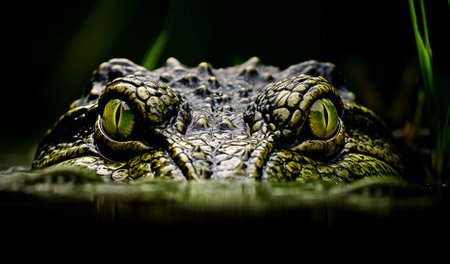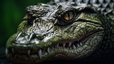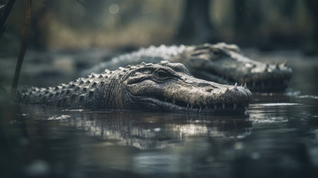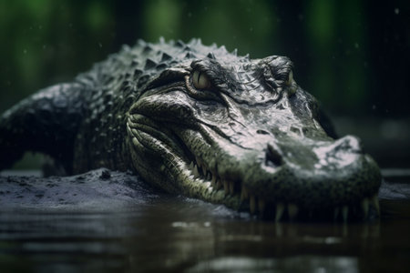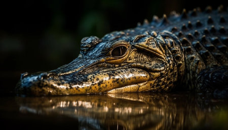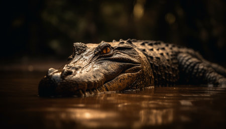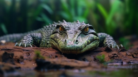 Crocodile resting in wetland, danger lurking in tropical climate generated by artificial intelligence
