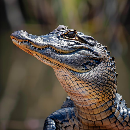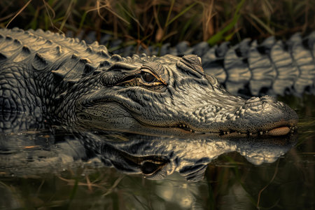 Close up portrait of an alligator in natural habitat, wildlife photography