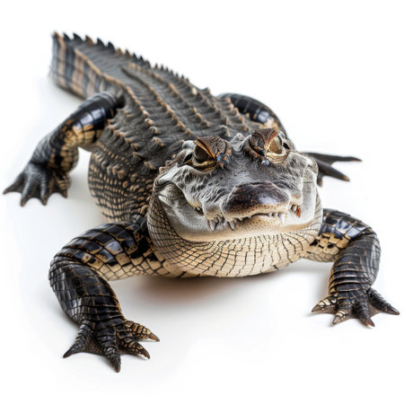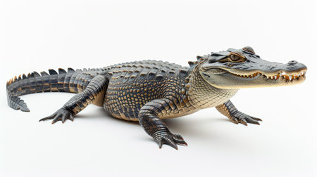 Close up of alligator isolated on white background. Studio shot.