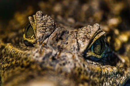 Crocodile head close-up. Caiman crocodilus
