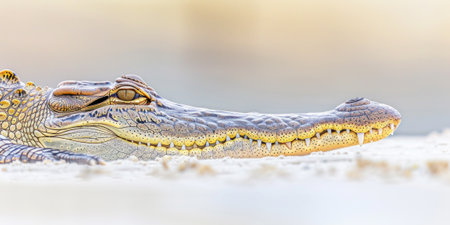 Crocodile with Powerful Jaws on Soft Pastel Background Concept contrasts the strength of the crocodile with a gentle background for visual impact..