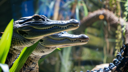 Alligators in nature, national geography, Wide life animals. AI Generated.