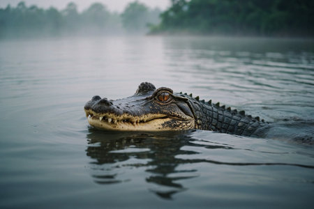 Crocodile Lurking in Misty Waters