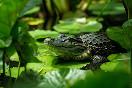 crocodile amidst dense foliage in a tranquil oasis
