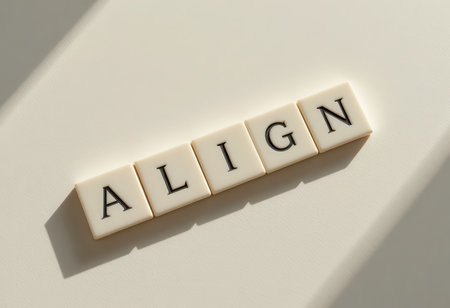 Inspiring letter tiles spell ALIGN on a smooth tabletop, symbolizing focus and clarity in achieving personal and professional goals.