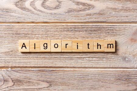 Algorithm word written on wood block. Algorithm text on table, concept.