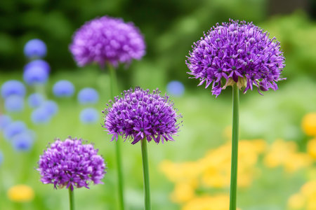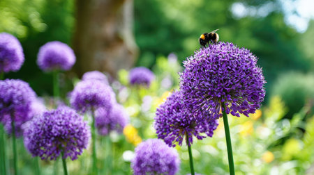 Stunning Purple Allium Flowers in a Lush Garden Setting, Adding Vibrant Color and Texture