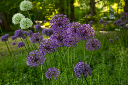 Vibrant Allium Field Flowers on a Sunny Summer Day in a City Garden Landscape Design Setting