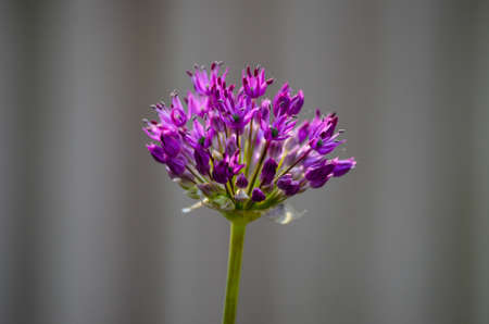 Purple pink garden Allium flower from onion and garlic family. Beautiful picture of Allium with dew for the gardening.