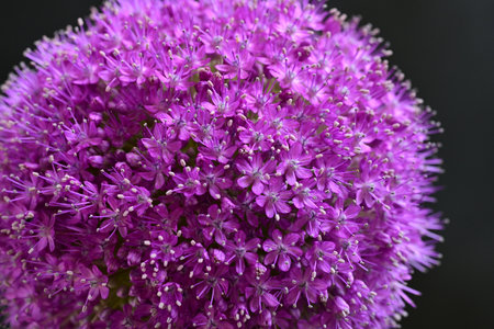 Close up of an Alium Gigantium Flower Headalium flower with dandelion flower structure. soft focus. shallow depth of field. Beautiful flowers. Purple alium onion flower. Toned image