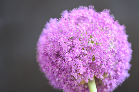 blooming purple onion flower on a blurred background with highlights and side.close-up. natural light. Allium aflatunense. Alliaceae. Allium.