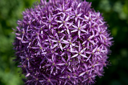 Stunning Close-Up of Vibrant Purple Allium Blooms in Lush Green Garden Setting During Springtime