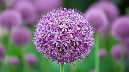 AI Generated. Stunning Purple Allium Flower Bloom Closeup Nature Beauty