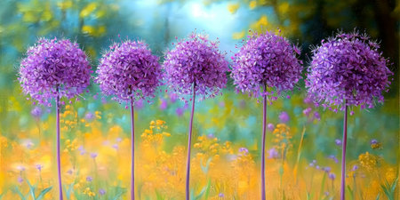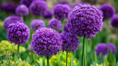 Vibrant Allium Blooms in a Colorful Spring Garden Creating a Delightful Floral Landscape Scene