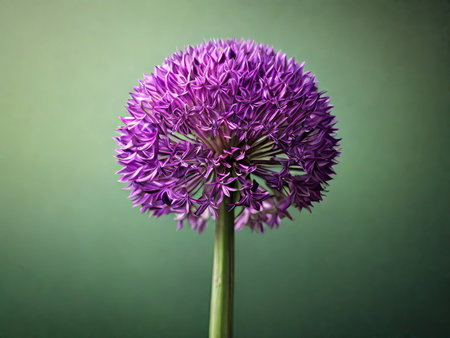 Amazing fluffy flower of a Allium on a dark green background. Minimal concept. Selective focus.