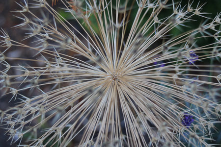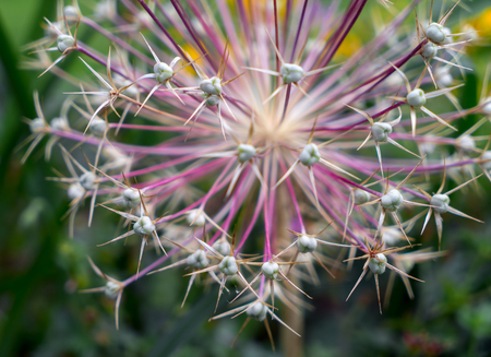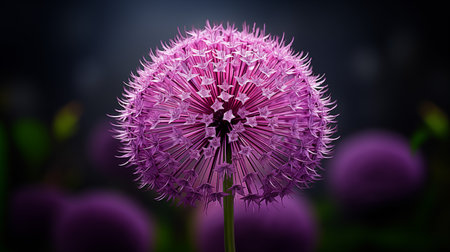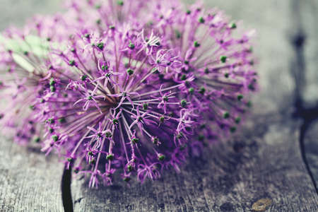 Close up of an Alium Gigantium Flower Headalium flower with dandelion flower structure. soft focus. shallow depth of field. Beautiful flowers. Purple alium onion flower. Toned image