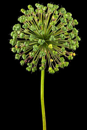Perianth (inflorescence) of ornamental onion after flowering, isolated on black background