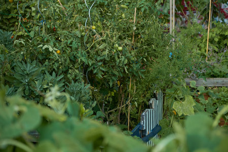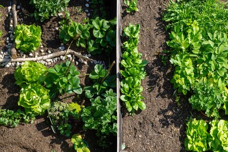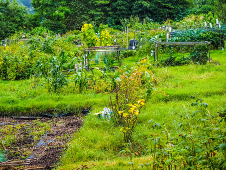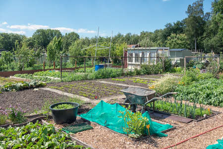 Allotment garden with home-grown plants and vegetables