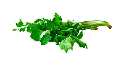 a bunch of fresh fragrant cilantro she is a caryander closeup on a white background