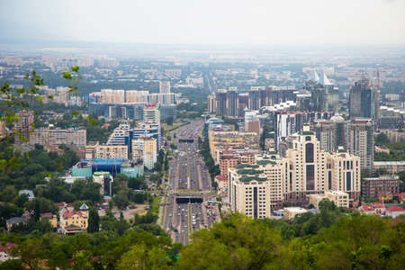 Almaty city in the summer. Aerial view of Almaty. Kazakhstan. Central Park View.