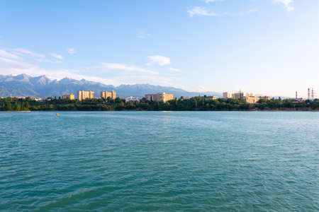 View of the mountain from the Lake of Sairan in the city of Almaty