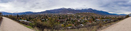 Panoramic view of the city and the snow-capped mountains
