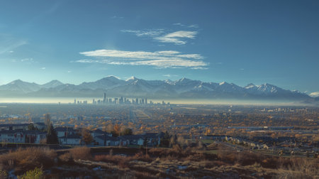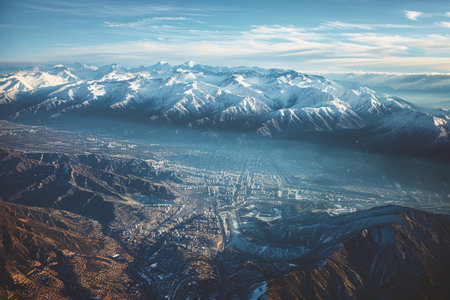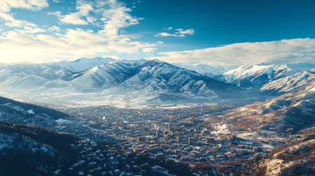 Taking in the aerial view of a city nestled among mountains. A high quality image making by generative ai.
