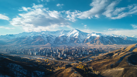 Panoramic aerial view of Almaty city, Kazakhstan.