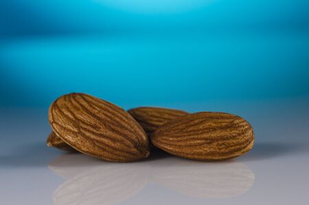 Close up of almond on blue background