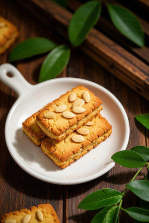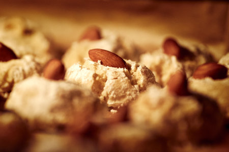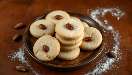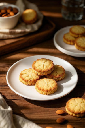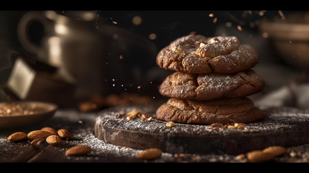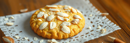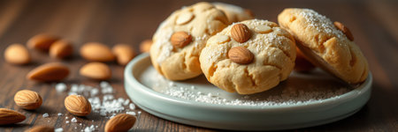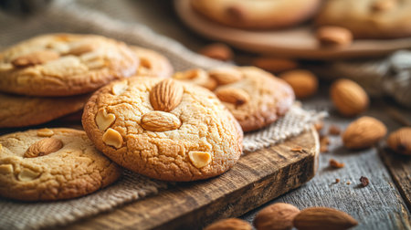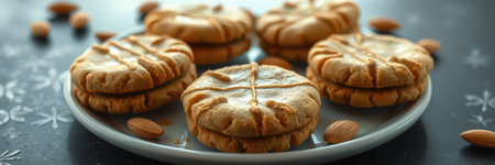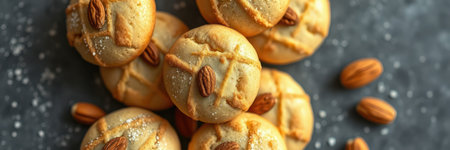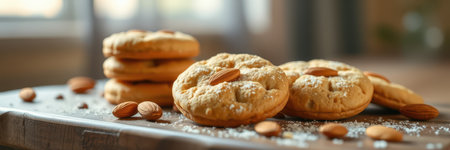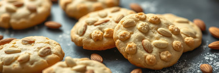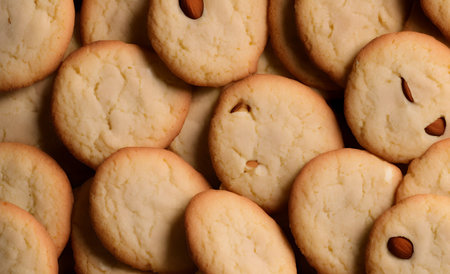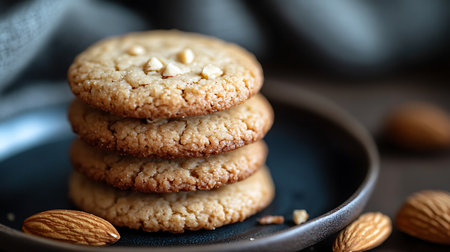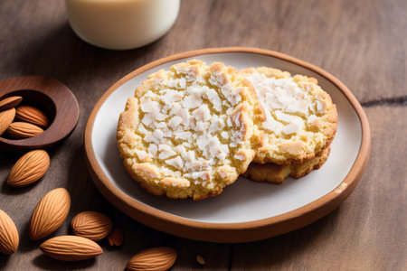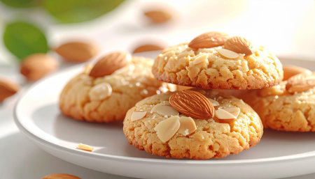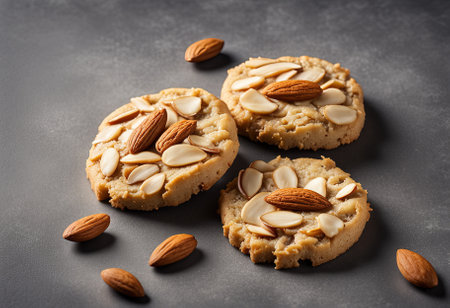 Realistic illustration of some almond cookies, sweet baked food, generative ai