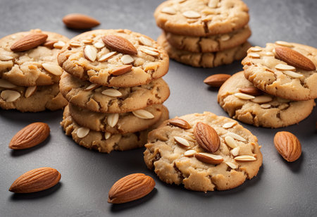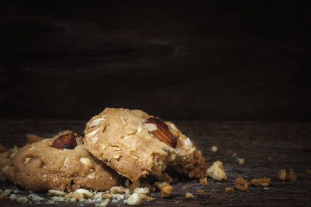 Homemade oatmeal cookies with almond, selective focus, shallow DOF