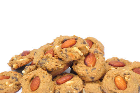 Chocolate chip cookies, almond,nut,hazelnut cookies.on white background