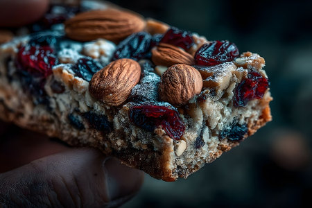 Close-Up of Nut and Berry Granola Bar for Healthy Snacking Generative AI