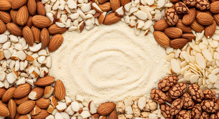Almond, cashew, hazelnut, walnut, pistachio, almond, peanut, almond flour background