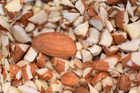 Chopped almonds abstract background and texture.