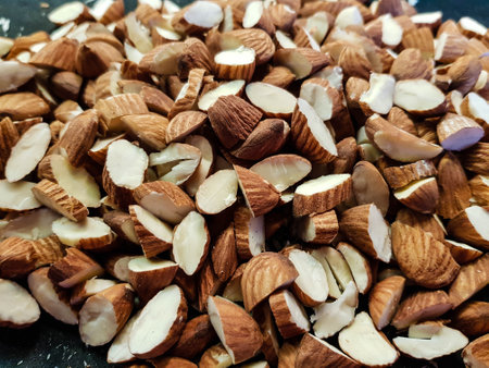 raw sliced almond nuts - closeup background